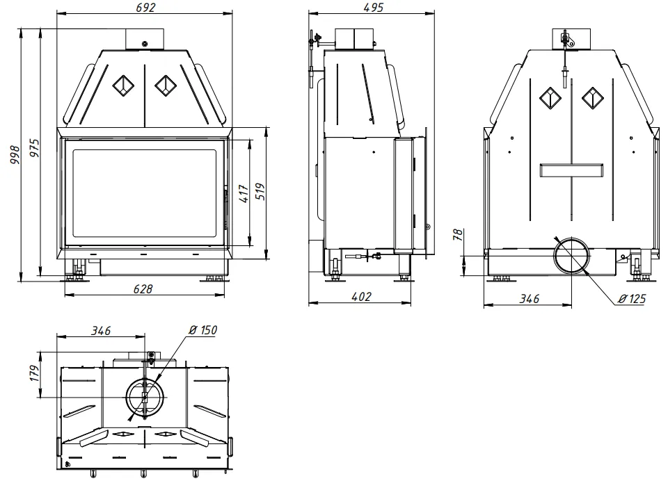 Каминная стальная топка Альфа 700-150 это топка, которая применяется для обогрева жилых помещений, в режиме непрерывной эксплуатации от 6 до 24 часов в зависимости от режима горения. Периодичность закладки дров с интервалом 45-90 мин. В экономичном режиме горения интервал закладки дров может быть от 3 до 5 часов. В качестве топлива применяются сухие дрова с влажностью не более 18%.