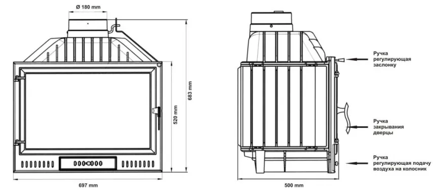 выдвижной зольник и регулируемая шиберная заслонка служат регуляторами интенсивности нагрева помещений и позволяют поддерживать оптимальную температуру максимально продолжительное время на одной загрузке