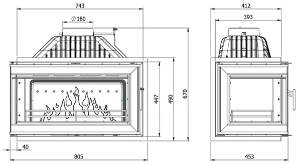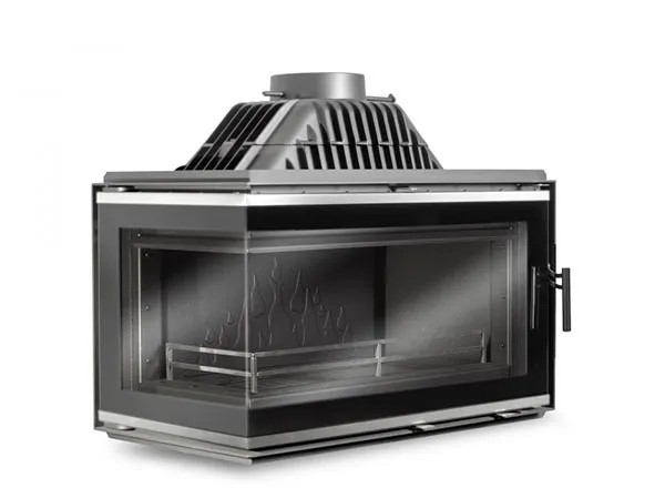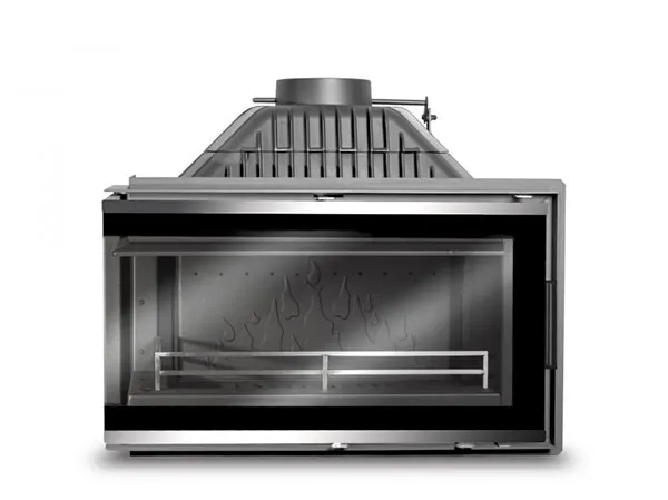 Характеризуется высоким показателем коэффициента полезного действия – загрузка сухих дров позволяет получить КПД в пределах 74%. При относительно скромных габаритах обладает высокой мощностью. Плотно расположенные радиаторы для увеличения площади теплоотдачи в помещение. Дополнительная жаростойкая плита, которая предохраняет корпус каминной топки от износа. Декоративная решетка, которая препятствует выпадению дров из топки камина.