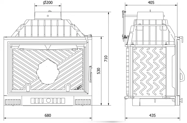 выдвижной зольник и регулируемая шиберная заслонка служат регуляторами интенсивности нагрева помещений и позволяют поддерживать оптимальную температуру максимально продолжительное время на одной загрузке