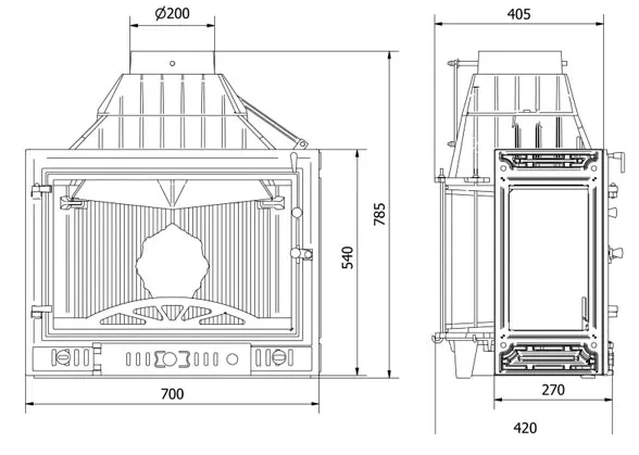 выдвижной зольник и регулируемая шиберная заслонка служат регуляторами интенсивности нагрева помещений и позволяют поддерживать оптимальную температуру максимально продолжительное время на одной загрузке