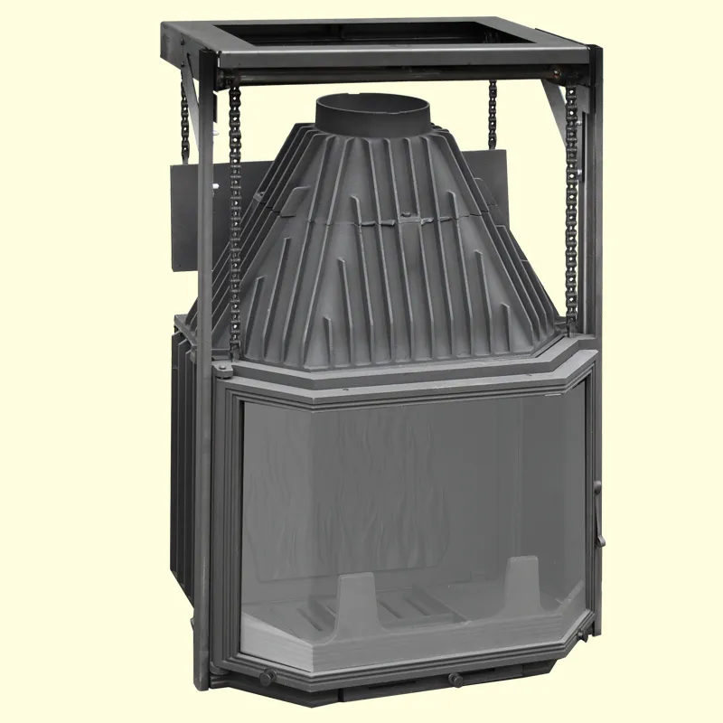 Каминная топка изготавливается из чугуна, что даёт ей прекрасные характеристики: особую стойкость к тепловым нагрузкам, долговечность в эксплуатации и очень хорошая теплоотдача