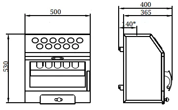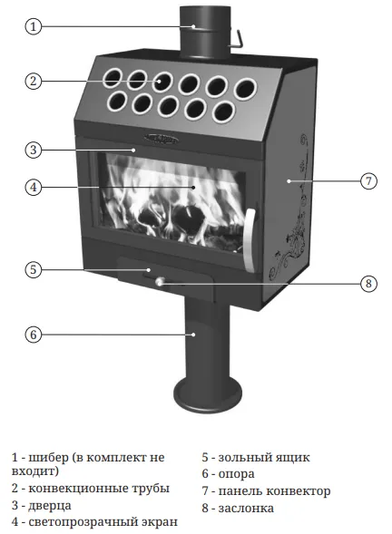 Корпус печи изготовлен из высоколегированной жаростойкой стали с содержанием хрома до 13%. Благодаря этому стенки печки быстро нагреваются и так же быстро прогревают воздух отапливаемого помещения. Для увеличения срока службы топка защищена шамотом.