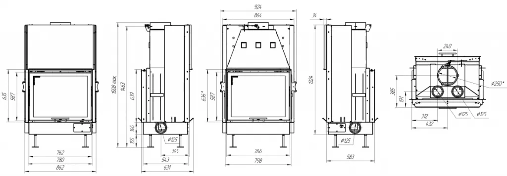 Основные характеристики каминной топки Вега