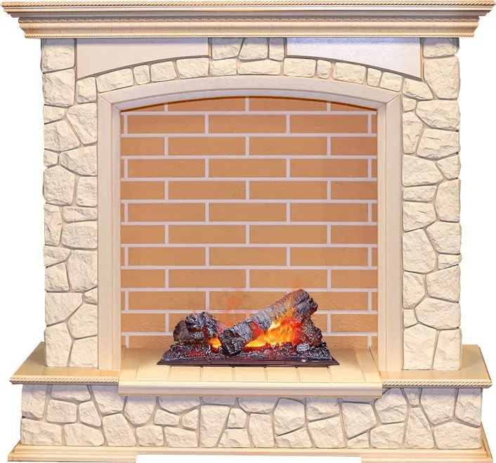 Каминокомплект Preston - Слоновая кость с патиной / Кирпич с очагом Cassette 400 NH
