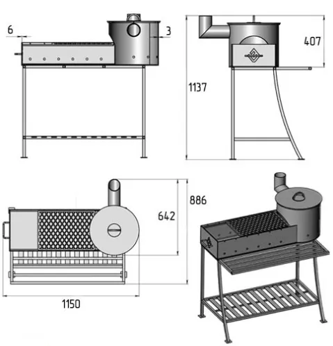 Мангал "Надежный Плюс" получил свое название из-за того, что произведен из 6мм котловой стали, покрытый термостойкой кремнийорганической эмалью, также особенностью мангала является печь под казан с высокой вытяжной трубой самоварного типа. На мангале можно одновременно готовить пищу на шампурах и в казане.