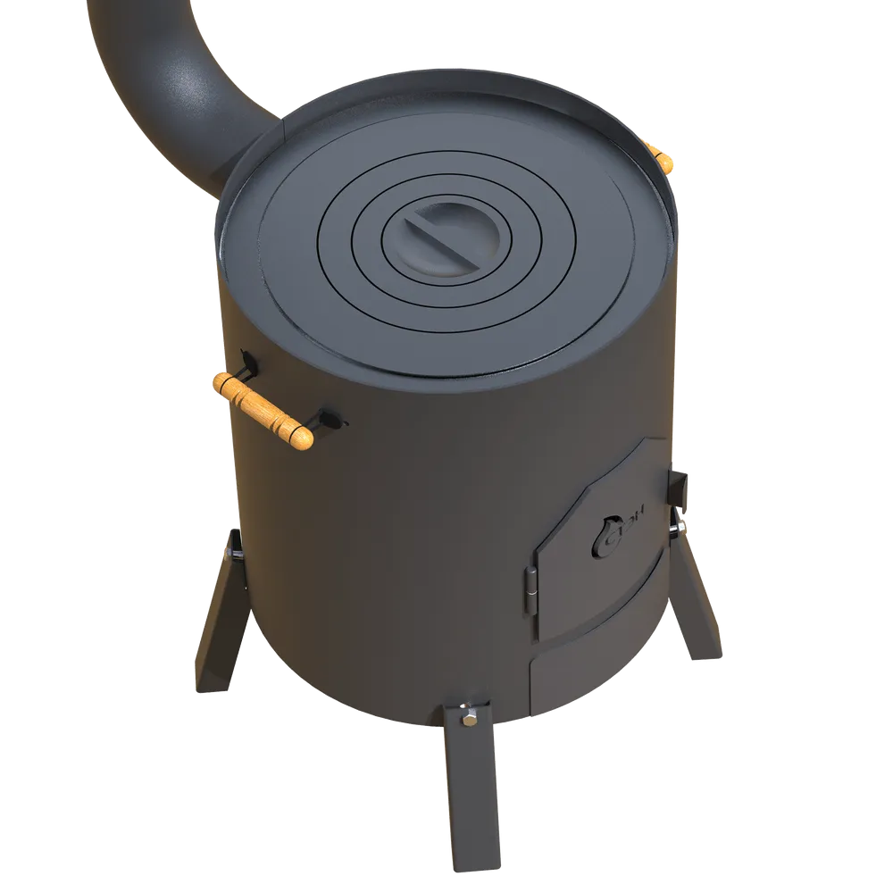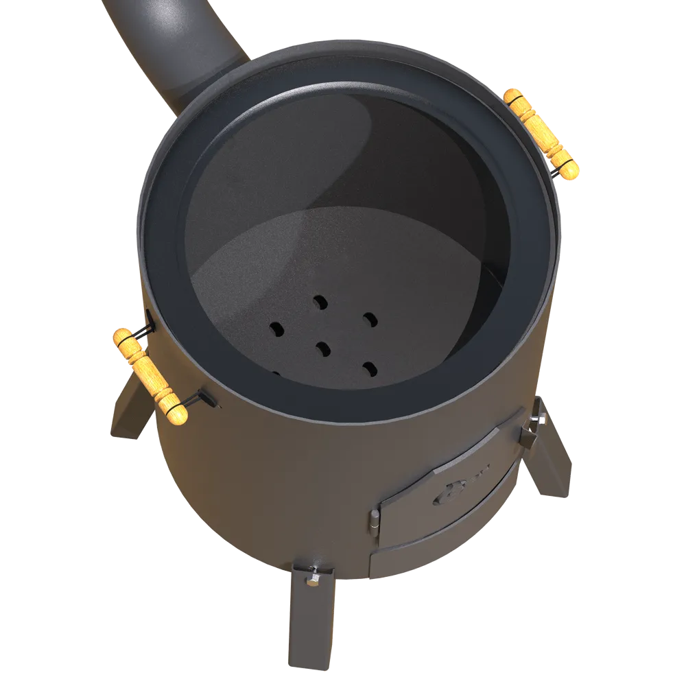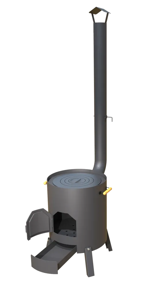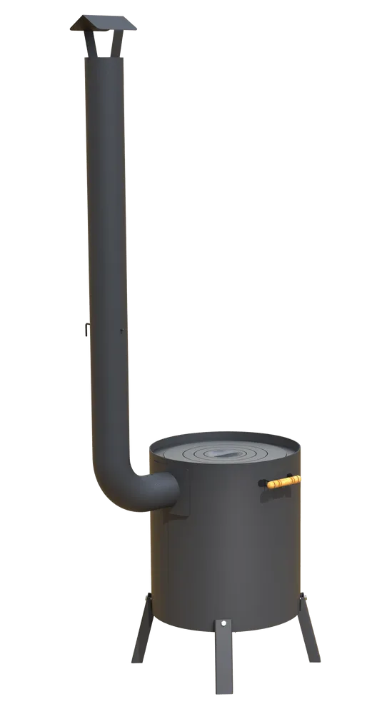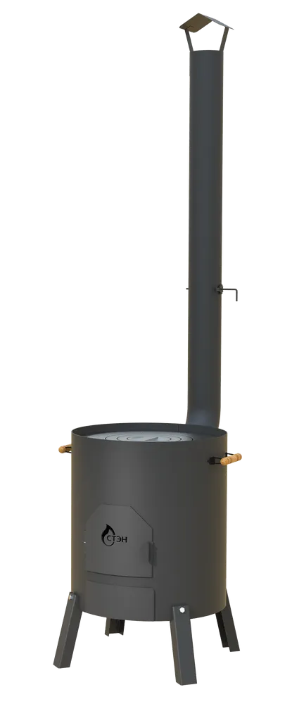 Удобная и надежная печь для приготовления пищи на открытом воздухе в казане ёмкостью 8-16л. Предусмотрено использование печи с варочной плитой.