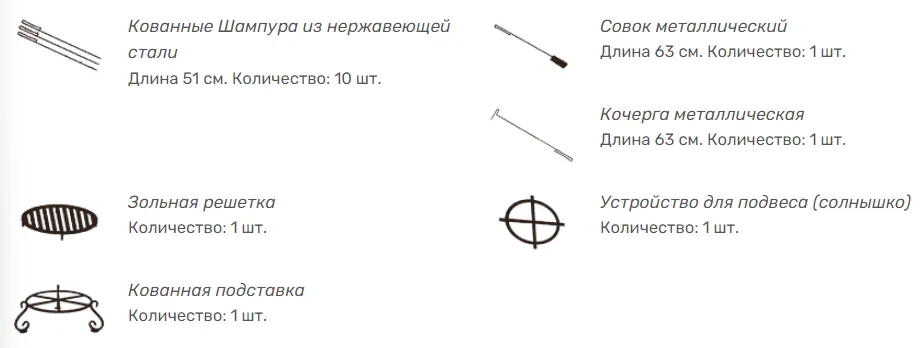 Тандыр имеет небольшие размеры и вмещает до 10 шампуров за раз. Толстые стенки тандыра "Барс" держат тепло в течении 2,5 - 3,5 часов. За один розжиг тандыра можно приготовить: 2-3 закладки мяса, готовящегося по 20-30 минут; овощи, рыбу. Совок, входящий в комплектацию имеет большую рабочую поверхность, что делает уборку тандыра лёгкой и комфортной. Удлиненная кочерга, позволяет удобно справляться как с большими дровами, так и с углями на дне, избегая контакта кожи рук с жаром от углей и огня. Тандыр является мобильной печью с помощью которой легко и быстро приготовить на природе вкусные, сочные и разнообразные блюда.