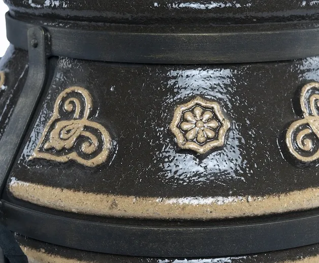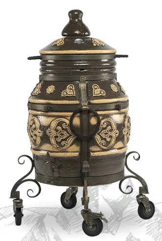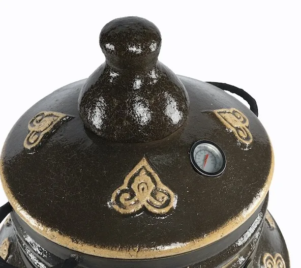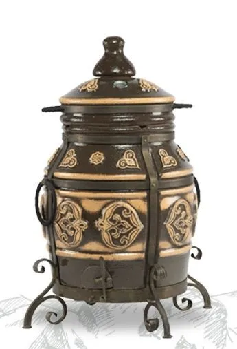 Черный или кремовый — тандыр «Урал», покрытый глянцевой глазурью и разрисованный этническим орнаментом, всегда выглядит стильно и эффектно. Его дизайн продуман до последней мелочи: например, металлические ручки обтянуты натуральной кожей. Это не только безопасно, но и приятно на ощупь.