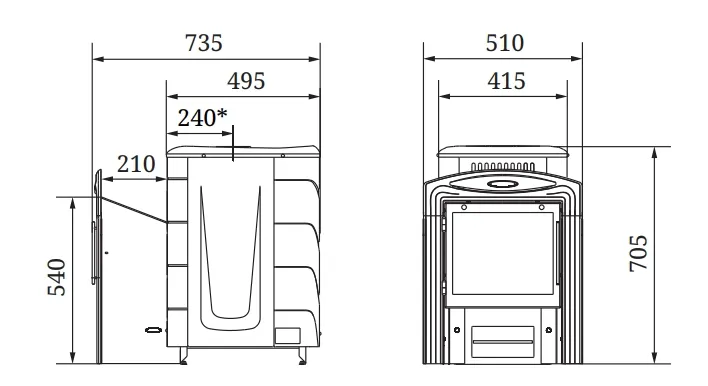 Модификация с экраном Витра 42 см, теплообменником, цвета антрацит