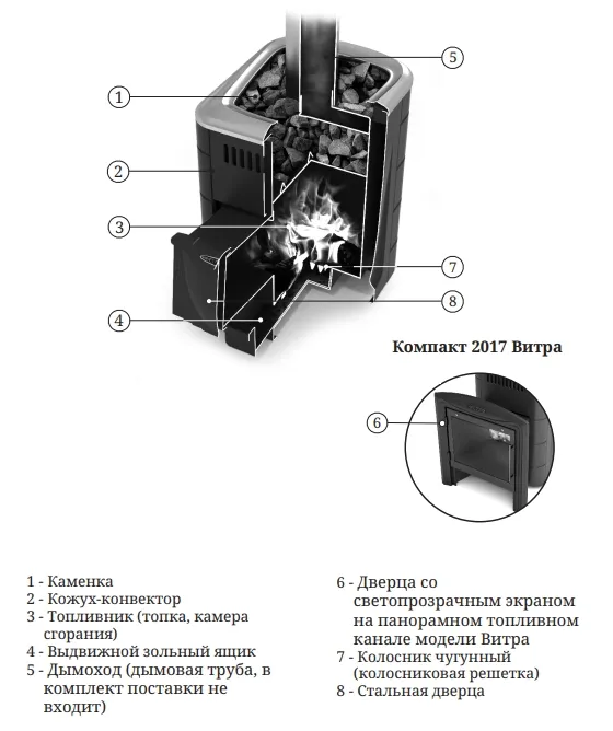 Как и предыдущая версия «Компакт 2013 Carbon», обновленная печь «Компакт 2017 Carbon» изготовлена из конструкционной стали толщиной 4 мм. Дно каменки выполнено из конструкционной стали толщиной 6 мм. и дополнительно усилено ребрами жесткости.
