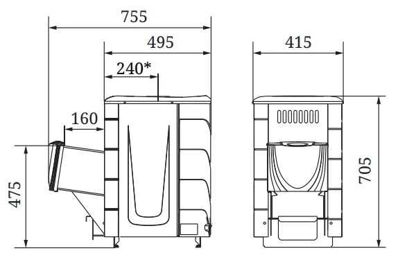 Печь упакована в транспортную тару. Руководство по эксплуатации (в упаковочном пакете) и комплектующие вложены в топку печи.