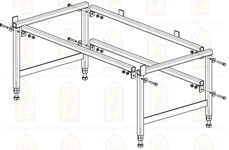 Благодаря регулировочным винтам, топку можно устанавливать на неровное основание. Практически, под каждую модель топки изготавливается индивидуальная подставка. Разборная. Подходит для топок Камилла 800, Камилла 800П, Панорама 800П