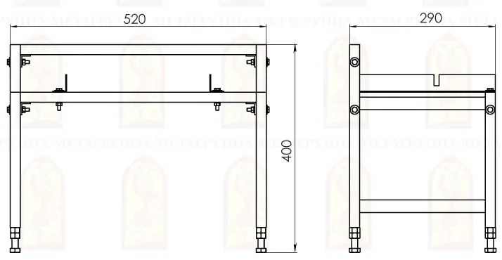 Благодаря регулировочным винтам, топку можно устанавливать на неровное основание. Практически, под каждую модель топки изготавливается индивидуальная подставка. Разборная. Подходит для топки Аврора 600
