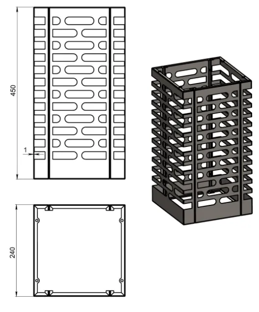 - Сетка выполнена из нержавеющей стали марки AISI 430 толщиной 1,5 мм с прорезными отверстиями в дизайне Астон.