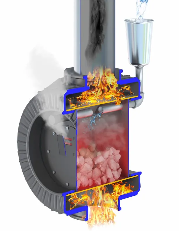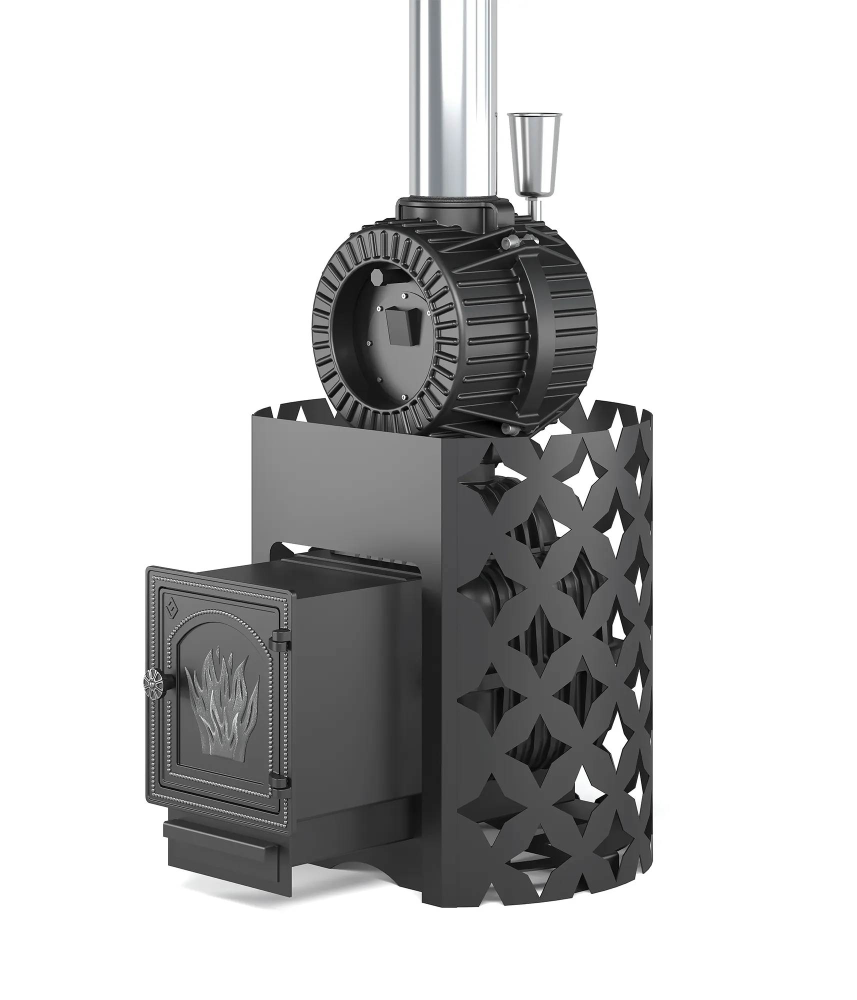 - При установке на банную печь максимально эффективно нагревает камни, что позволяет создать в парной правильную атмосферу.