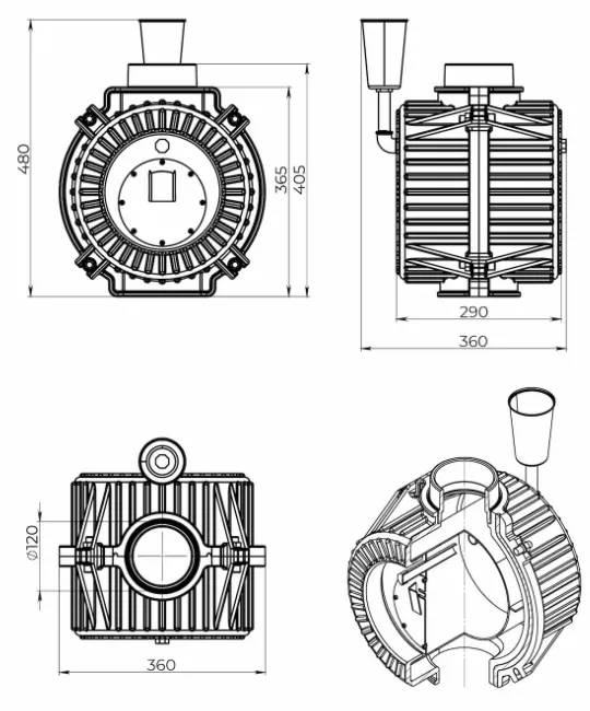 - Устанавливается на любую банную печь с дымоходом Ø115 и Ø120 мм.