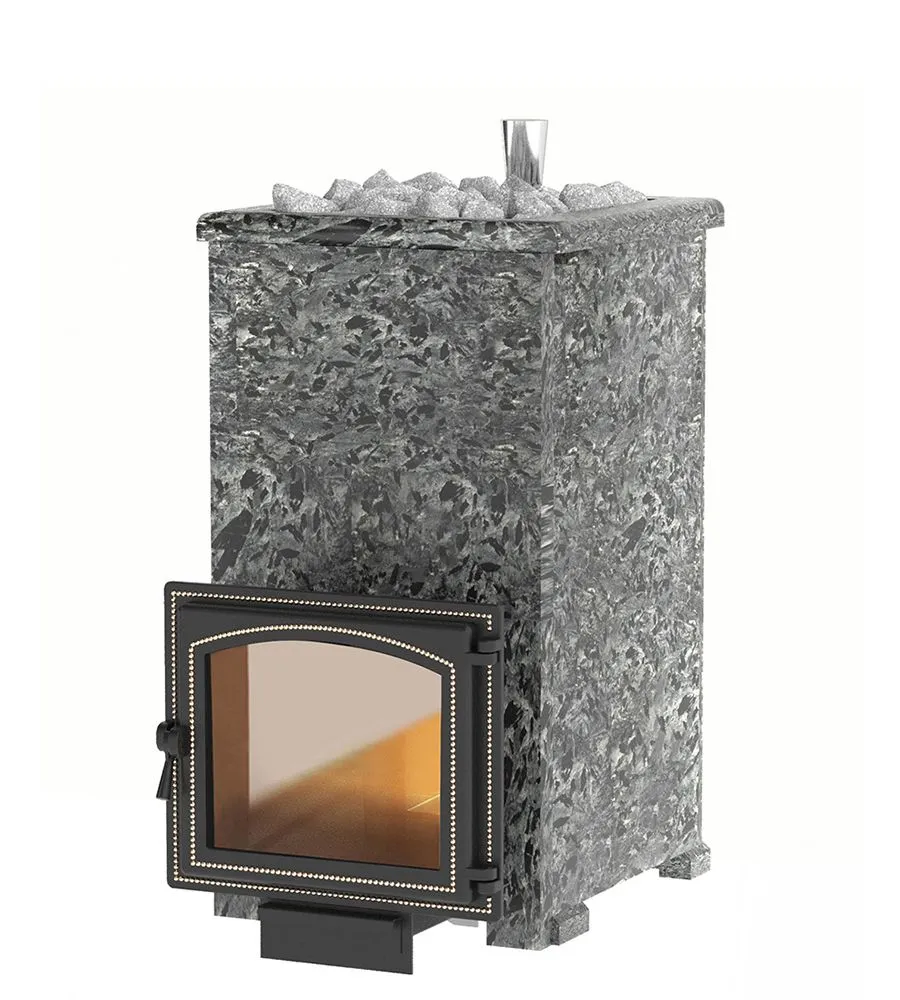 В комплект также входит облицовка из пироксенита элит, толщиной 40 мм. Облицовка из натурального камня смотрится оригинально и способна существенно преобразить интерьер вашей бани. Но помимо декоративной функции, пироксенит элит аккумулирует тепло, способствует более равномерному его распределению в парной, и благодаря данному натуральному камню температура в парной долго не падает. Облицовка из натурального камня также отличается долговечностью, она прослужит вам долгие годы.