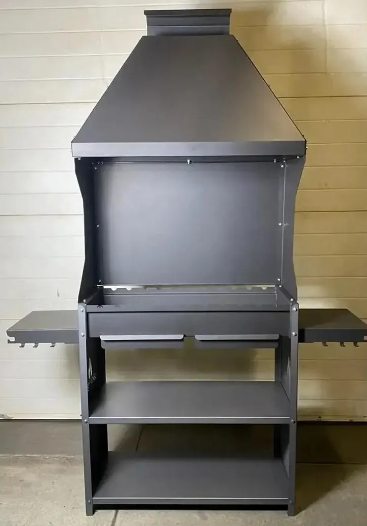 Всепогодность и комфорт: высокий дымоуловитель надежно защищает огонь и продукты от дождя и ветра, а также эффективно отводит дым от повара и гостей, делая процесс приготовления приятным и безопасным.