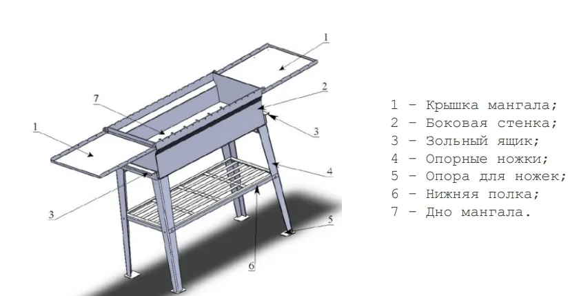 вся конструкция мангала изготовлена из высококачественной стали марки ст3сп5 толщиной 3 мм