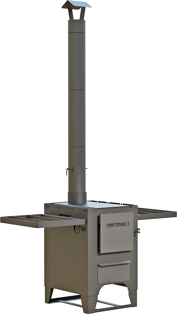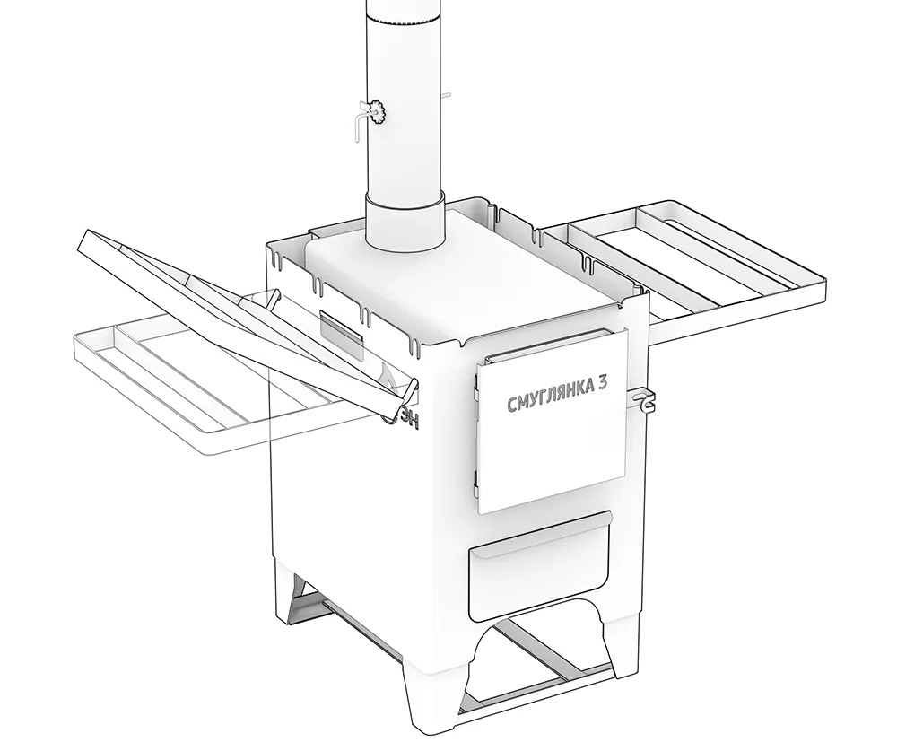 Печи арт. 31.109.5.91 комплектуются каменкой (разборным металлическим коробом) для обустройства бани в походных условиях. На печах «СМУГЛЯНКА» можно готовить и разогревать пищу.