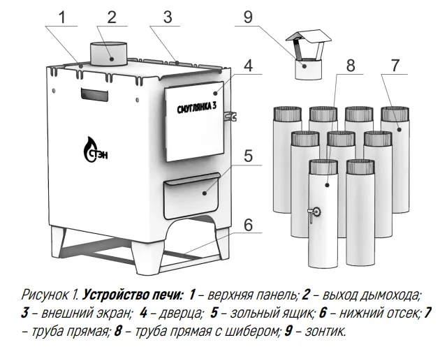 Воздухогрейные печи «СМУГЛЯНКА» предназначены для отопления стационарных и передвижных объектов в походных условиях: палаток, блиндажей, кунгов. Печи комплектуются разборным дымоходом.
