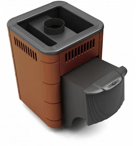 Центральное расположение дымохода значительно упрощает монтаж печи. Вентилируемая каменка способствует быстрому нагреву камней.