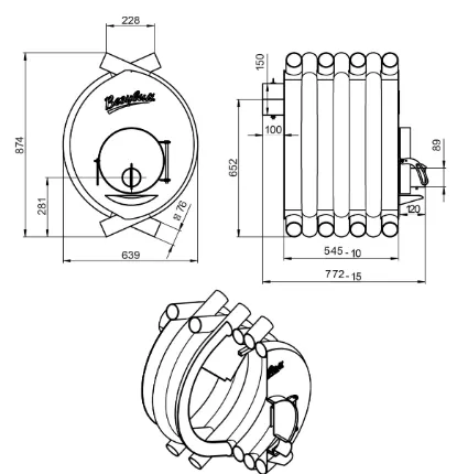 Печь оборудована двумя регуляторами; на дверце (регулятор мощности( и на дымоходном патрубке сзади печи (регулятор-газификатор)