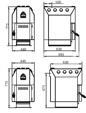 Отличаются они габаритными размерами, массой, объемом камеры сгорания, диаметром и количеством конвективных труб, площадью поверхностей нагрева, а также диаметром выхода дымохода. В печах рекордно развита площадь поверхностей, которые непосредственно нагреваются пламенем и охлаждаются воздухом. Конвективные теплообменные трубы по всему поперечному сечению и по всей длине, от начала до конца, находятся непосредственно в пламени. Передняя и задняя поверхности, на которых размещены конвективные трубы, полноценно участвуют в конвективном теплообмене.