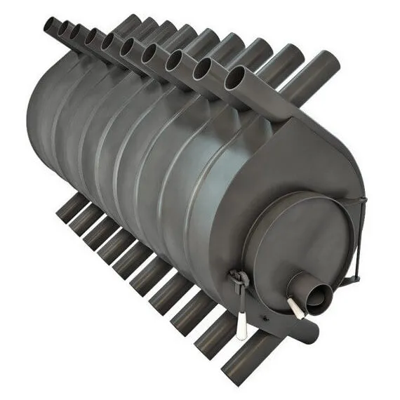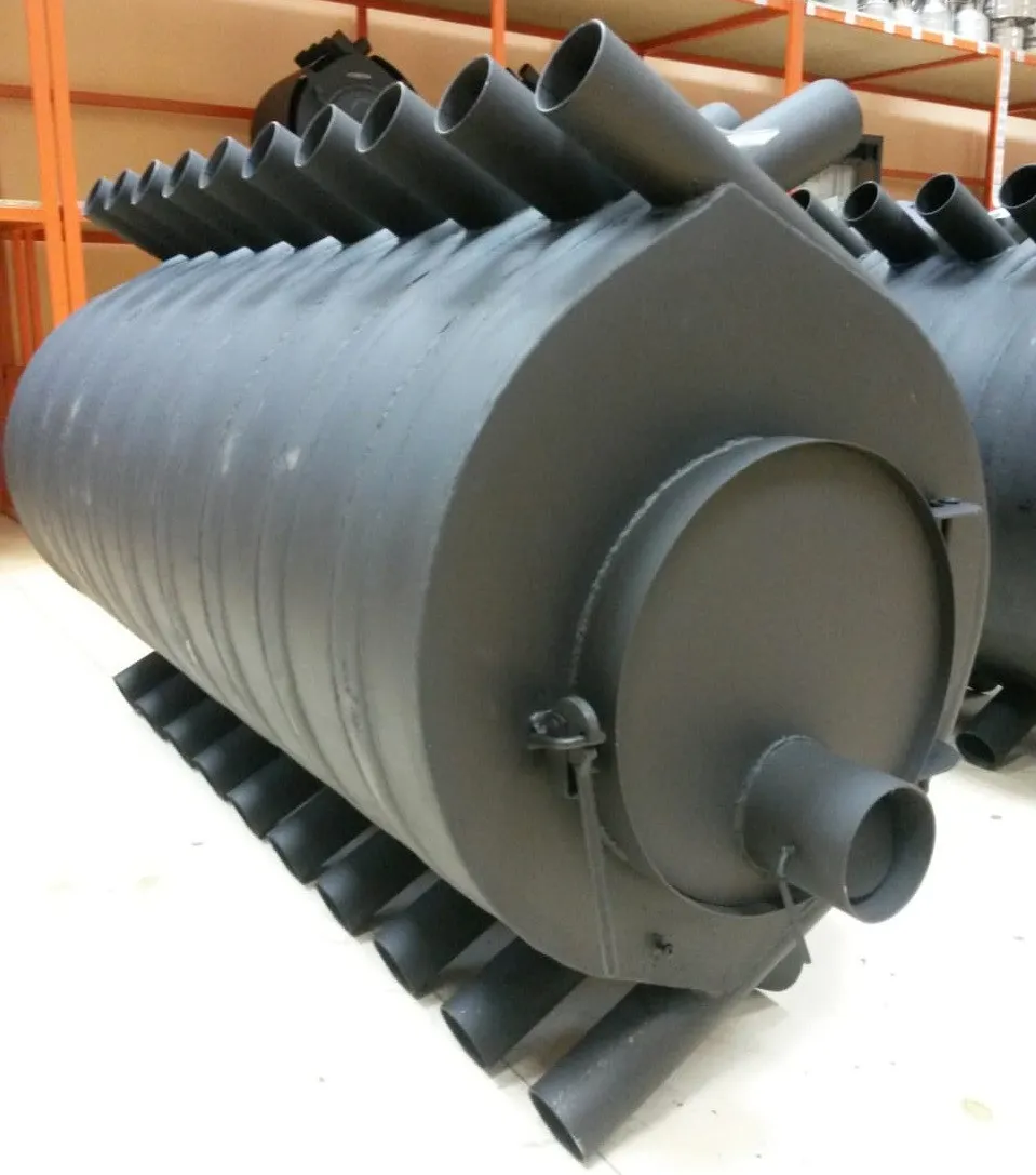 Благодаря постоянной циркуляции воздуха внутри труб, корпус печи не перегревается. При длительном горении температура потока горячего воздуха удерживается в пределах 50–60 °C, что делает эксплуатацию безопасной – можно не опасаться ожогов при прикосновении. Рабочая температура наступит от 20 до 40 минут.