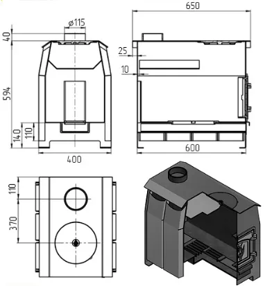Печь выполнена в эргономичном дизайне, компактна по своим размерам, окрашена эмалью черного цвета, что позволяет ей органично вписаться в интерьер любого помещения.