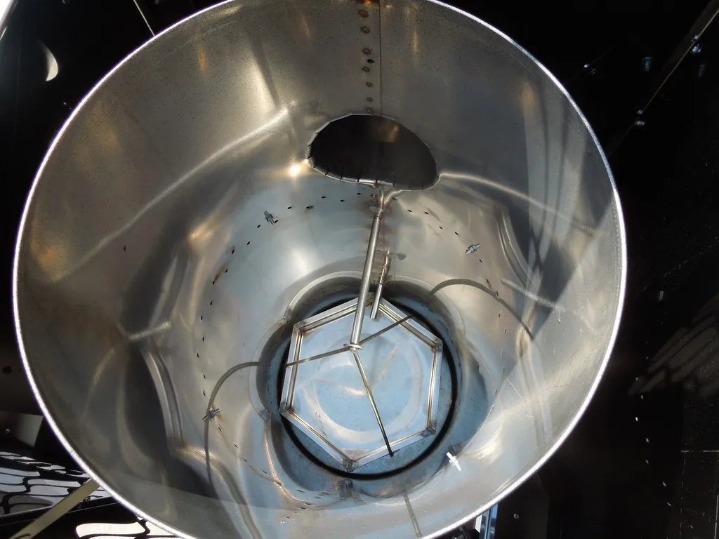 Принцип работы: Горение масла происходит в специальной тарелке. Пары разогретого масла обогащаются кислородом воздуха поступающего через отверстия камеры сгорания при наличии естественной тяги и догорают в верхней ее части. Чем сильнее тяга, тем активнее горение и наоборот. Регулировка мощности производится регулятором тяги (поворотной заслонкой), расположенным на первом участке выхлопной трубы (комплектуется).