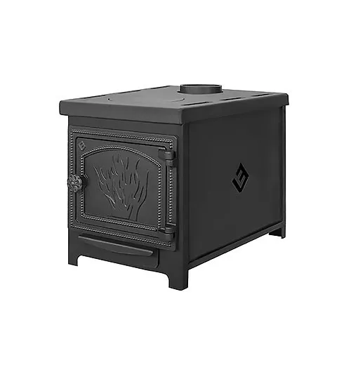 Одновременно с обогревом помещения, печь Теремок можно использовать можно использовать для приготовления пищи. Для этого печь оснащена варочной поверхностью с конфоркой. Колосниковая решетка и топочная дверца отлиты из жаропрочного чугуна. Это выгодно отличает печи от аналогов с металлическими дверками, которые подвержены деформации из-за высоких температур и перестают равномерно прилегать к топочному проему, тем самым нарушая герметичность