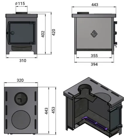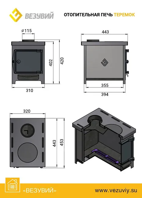 Печь выполнена в эргономичном дизайне, компактна по своим размерам, окрашена эмалью черного цвета, что позволяет ей органично вписаться в интерьер любого помещения.