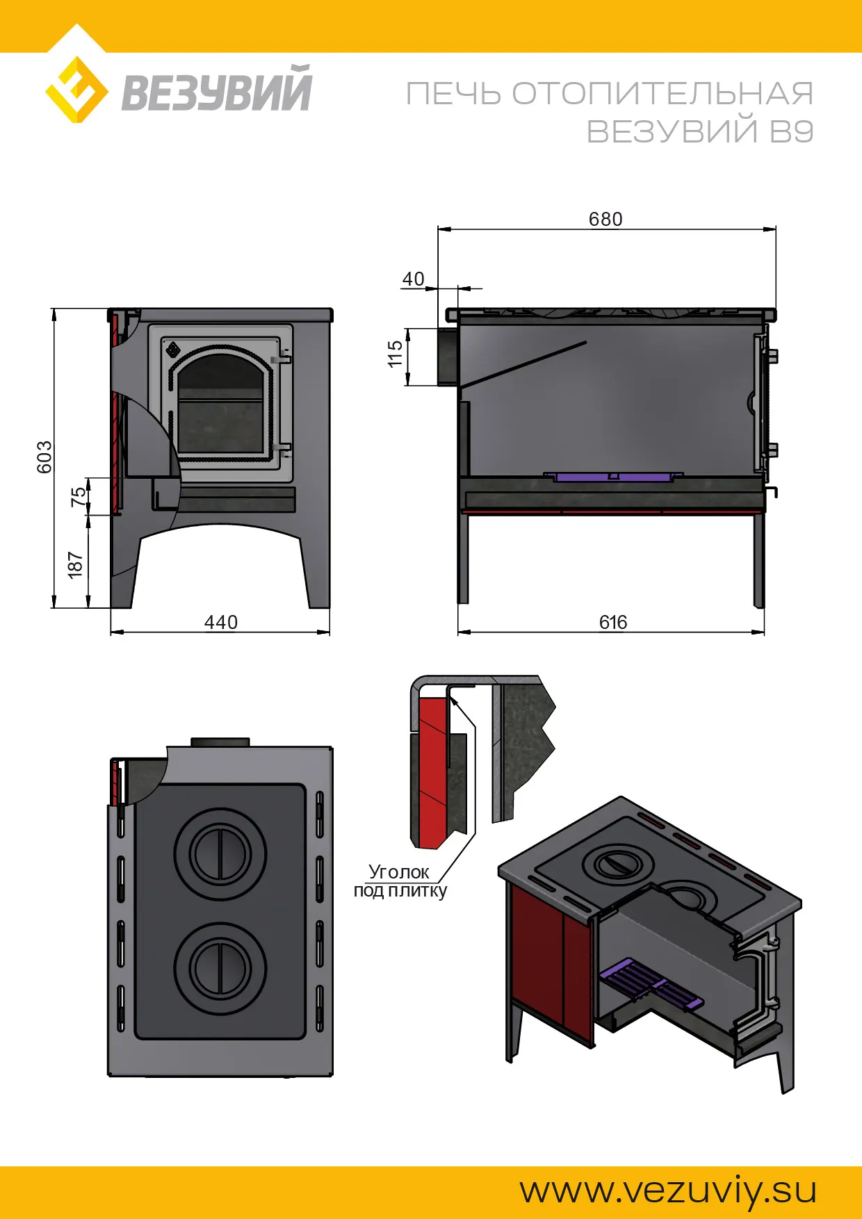 Основные характеристики отопительной печи В9