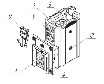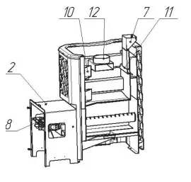 На выходе получаем легкий, перегретый мелкодисперсный пар. Значительная часть теплоотдающей поверхности печи закрыта кожух-конвектором, существенно ускоряющим нагрев воздуха в парилке и смежных помещениях за счет образуемого им мощного кругового конвекционного потока.