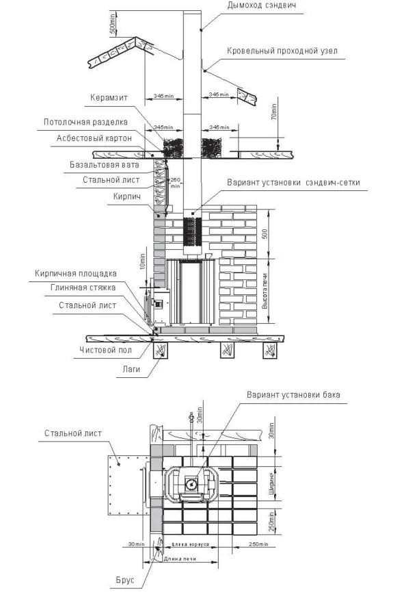 Рисунок 5. Рекомендуемая схема установки печи с кирпичной кладкой