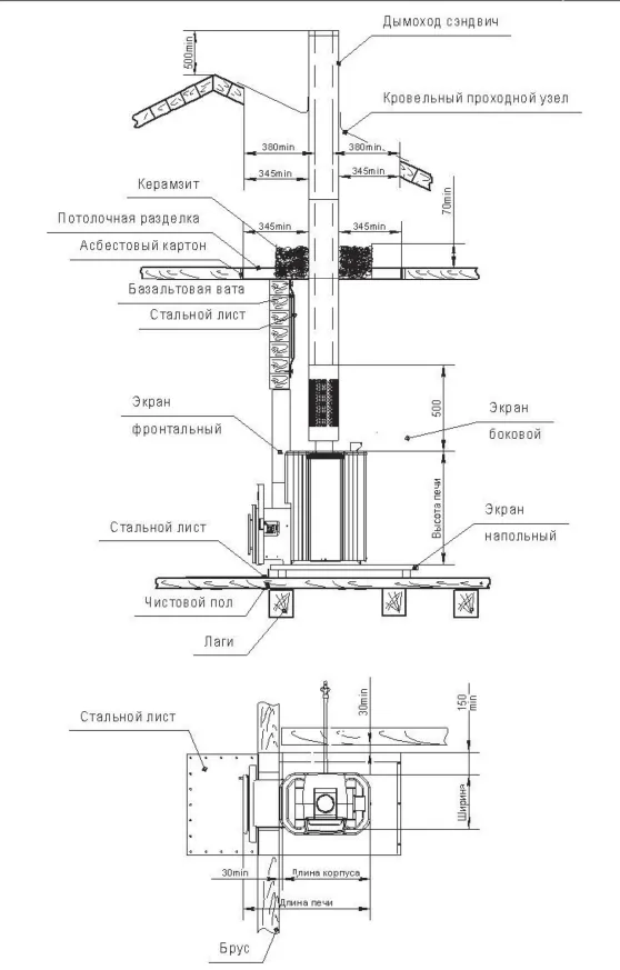Рисунок 6. Рекомендуемая схема установки печи с защитным экраном