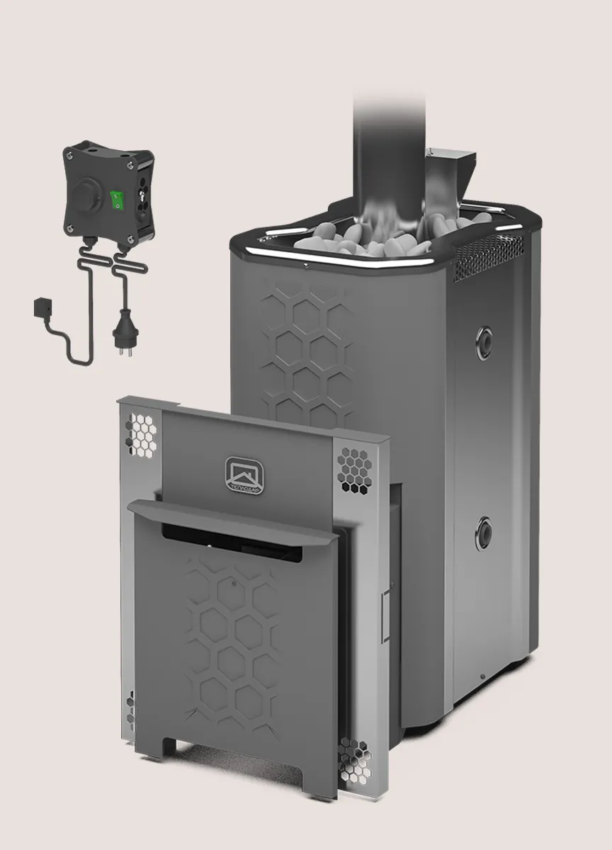 Материал топки печи — жаростойкая нержавеющая сталь толщиной до 2,5 мм с содержанием хрома до 13%, которая идеально противостоит кислой среде при сжигании газа. Большое количество нагретых камней, обеспечивает стабильность температуры в парилке.