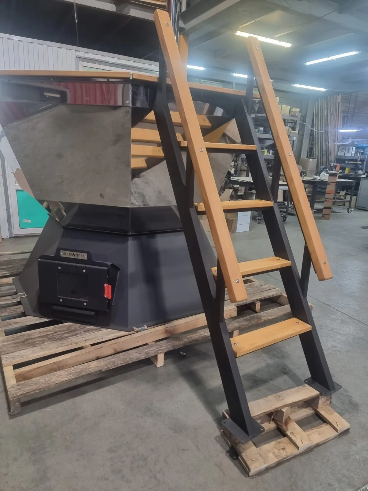 В комплекте: печь, дымоход и лестница — всё необходимое для установки и использования.