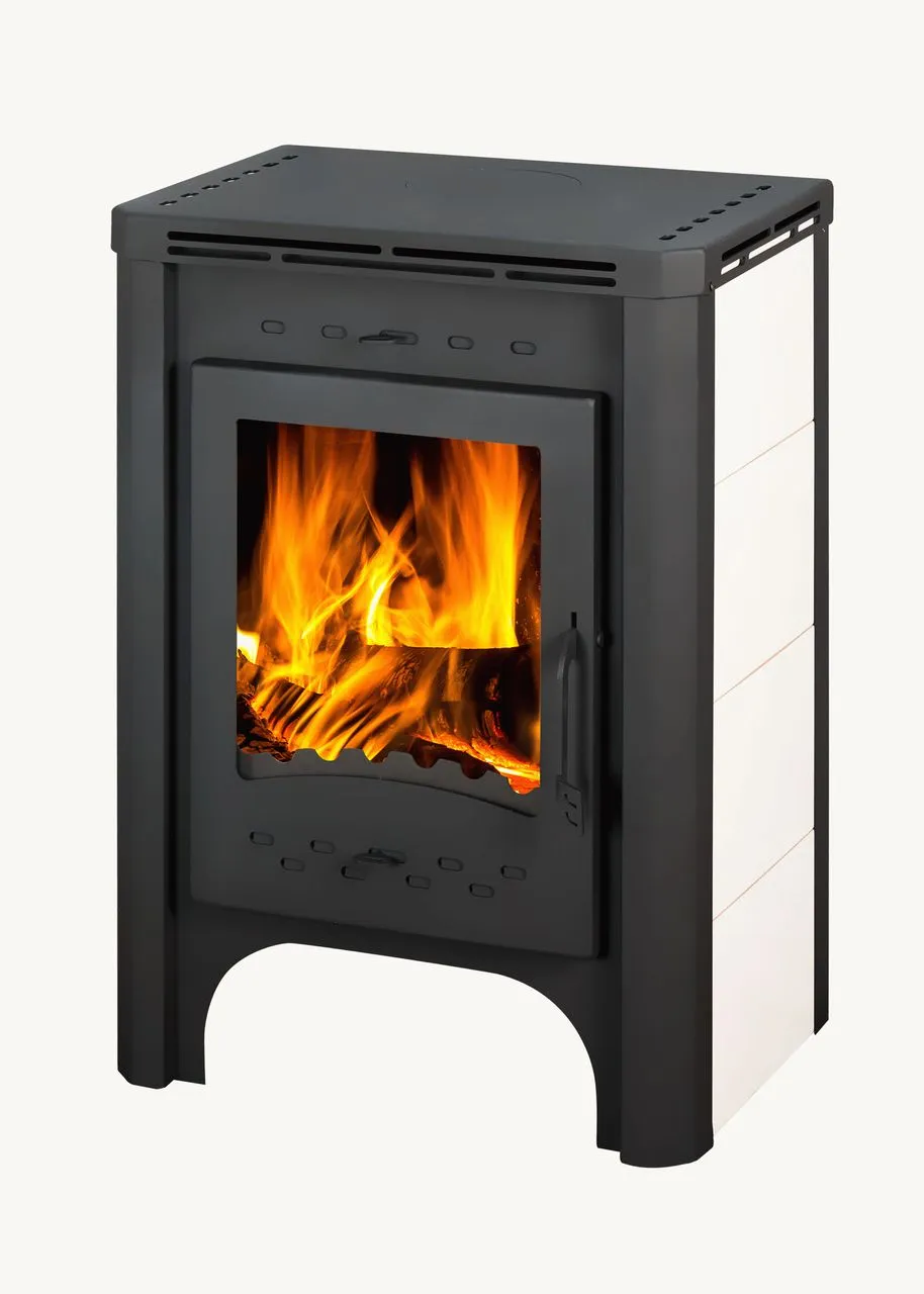 Корпус печи-камина Бавария выполнен из стали и облицован декоративной керамикой. Стальные печи быстро прогревают воздух в помещении. Начинают давать тепло уже через 15 минут после растопки. Термостойкий материал внутри топочной камеры - шамот. Он принимает основную температурную нагрузку.