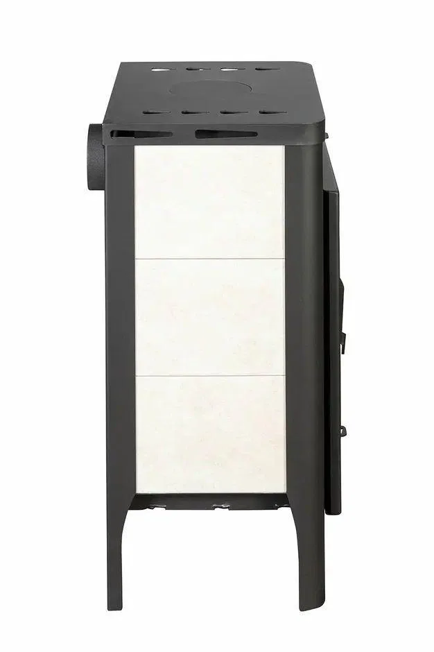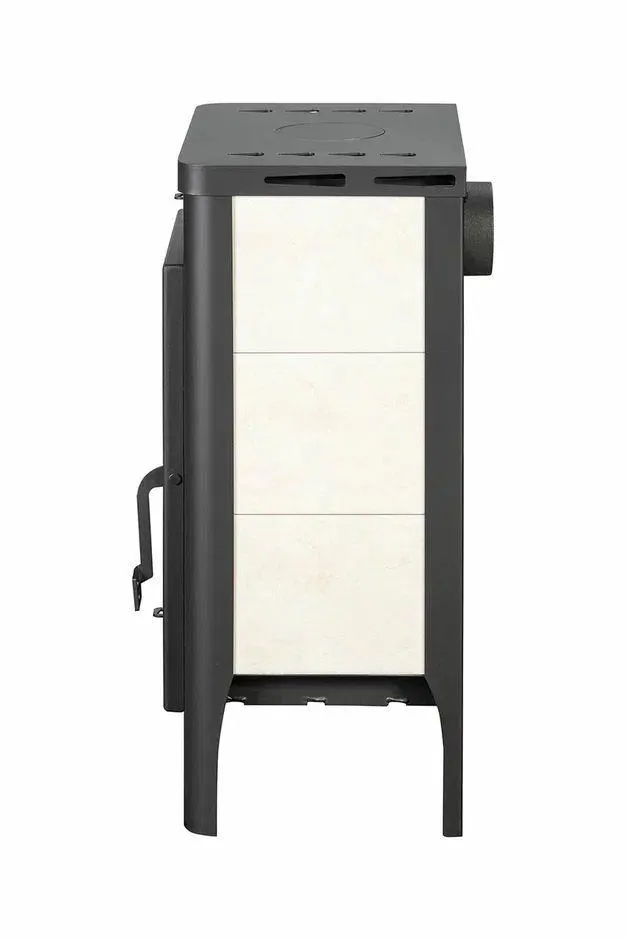 Корпус печи-камина Бавария Оптима выполнен из стали и облицован декоративной керамикой. Стальные печи быстро прогревают воздух в помещении. Начинают давать тепло уже через 15 минут после растопки. Термостойкий материал внутри топочной камеры - шамот. Он принимает основную температурную нагрузку.