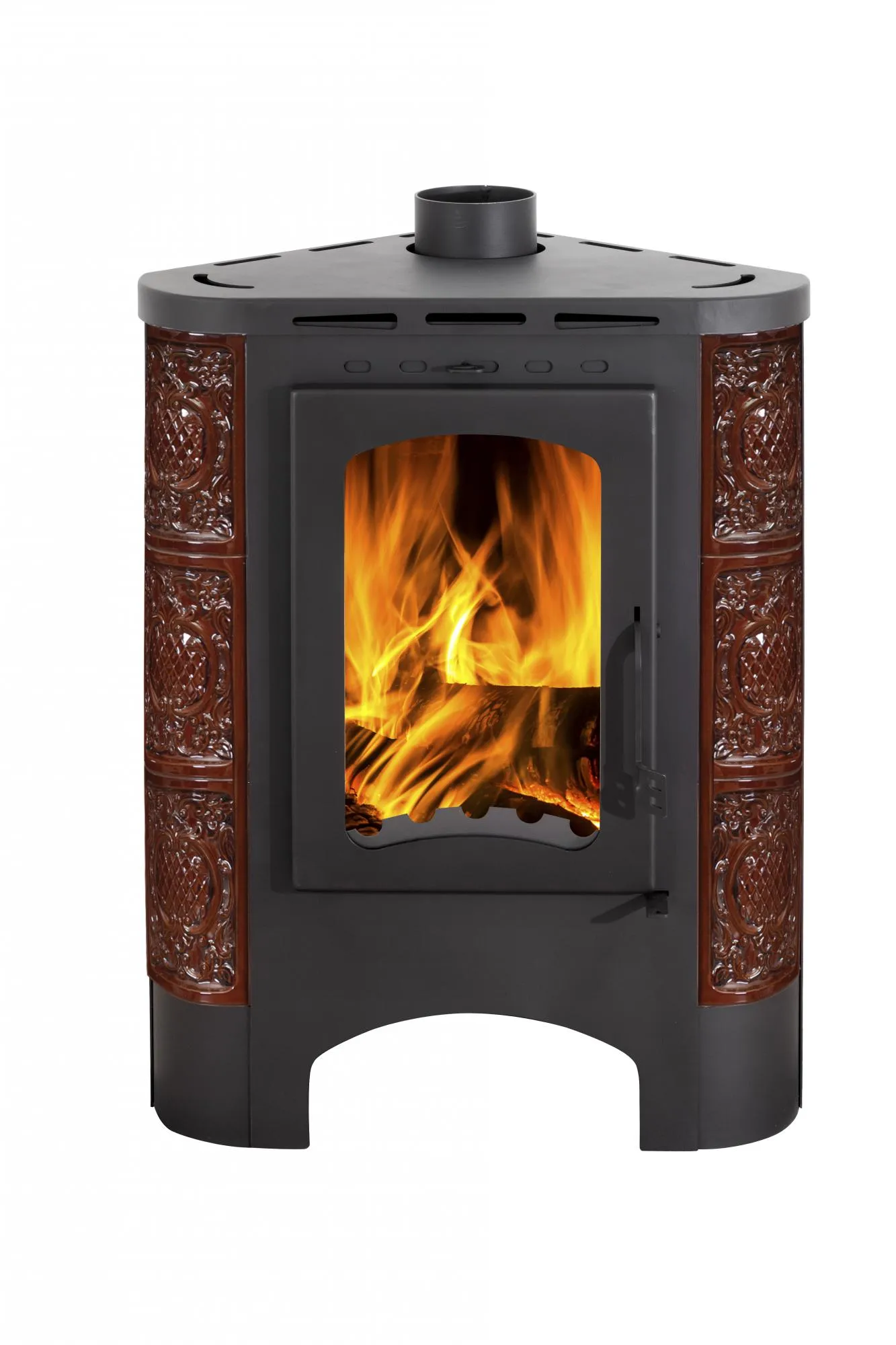 Печь-камин БАВАРИЯ Угловая Радиус изразцовая "Барокко" коричневый