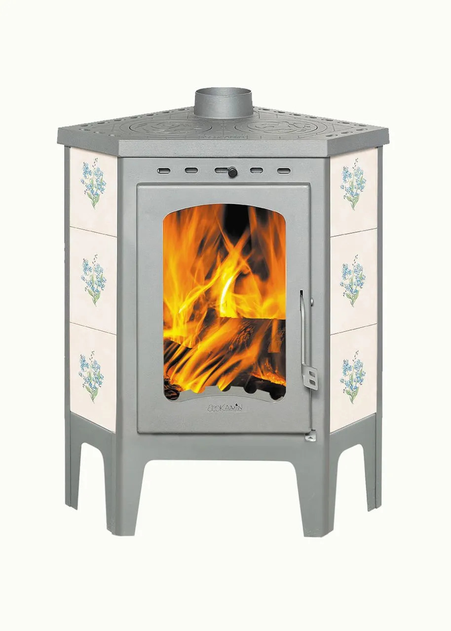 Печь-камин БАВАРИЯ угловая с плитой незабудка