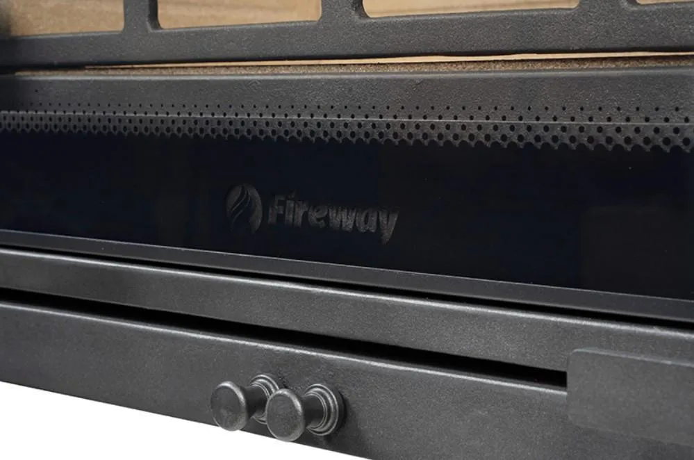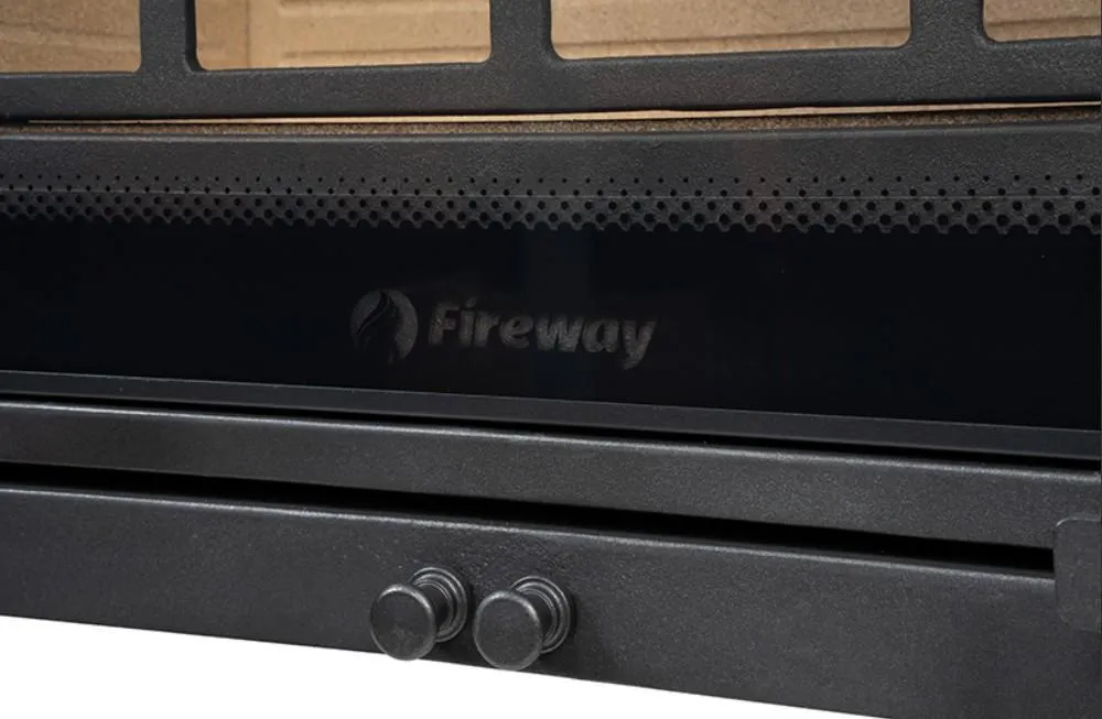 Печь-камин Fireway Solo II выполнена из прочного чугуна с добавлением хрома, что обеспечивает высокую стойкость к нагреву и долговечность конструкции. Сборка корпуса осуществляется по технологии «гребень-паз» с использованием огнеупорных уплотнителей, благодаря чему достигается полная герметичность и надежность в эксплуатации. Мощность модели составляет 11 кВт, что позволяет обогревать помещения объемом до 200 м³, будь то частный дом, дача или загородный коттедж. Конструкция предусматривает возможность подключения дымохода диаметром 150 мм как сверху, так и сзади, что облегчает монтаж.