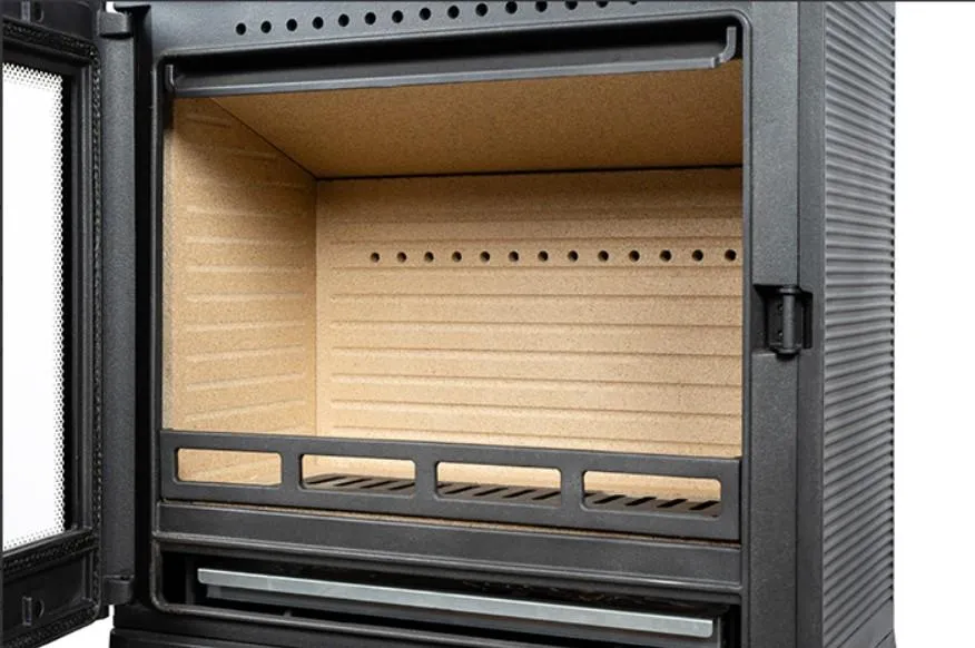 Футеровка из вермикулита и система вторичного дожига способствуют полному сгоранию дров, увеличивая КПД и снижая расход топлива.
