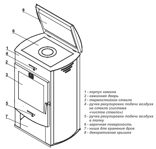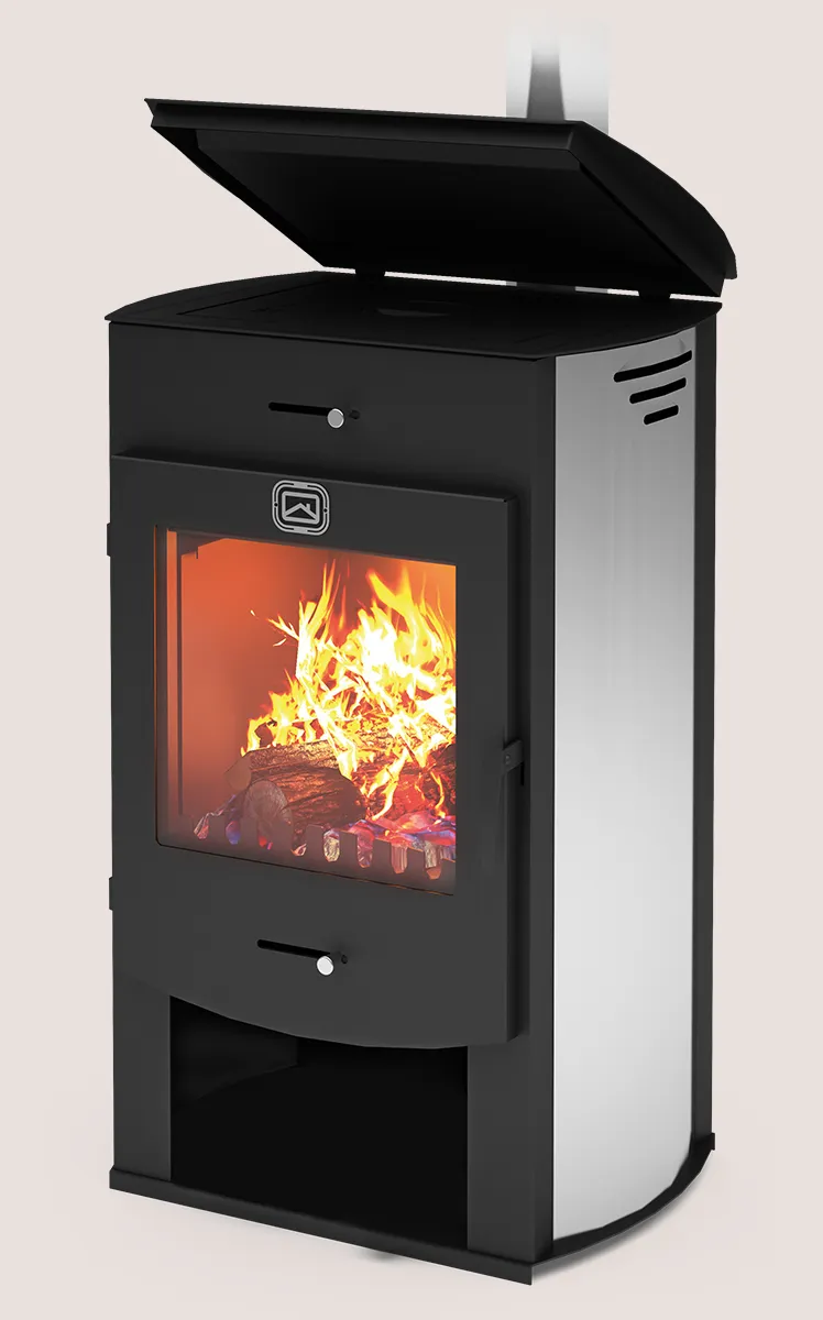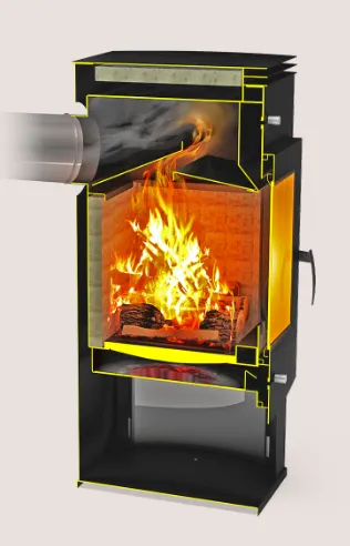 Камин оборудован высокоэффективной топкой, изготавливаемой из конструкционной стали толщиной 3мм. Для исключения преждевременного выхода из строя топка камина дополнительно защищена огнеупорными плитами из вермикулита. Танго Плюс оборудован чугунной плитой для приготовления и разогрева пищи.