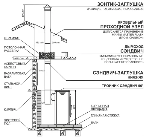 Диаметр дымохода (сэндвич), мм |