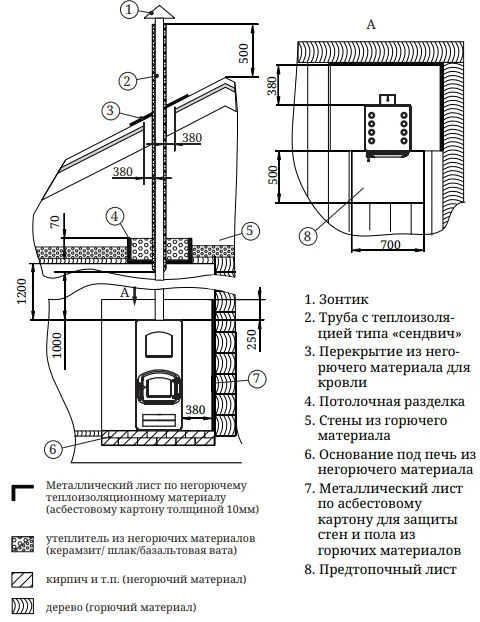 Печь занимает мало места в плане при развитых поверхностях нагрева