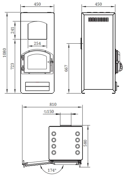 Регулируемые винтовые опоры дают возможность удобно выставлять печь «по уровню»